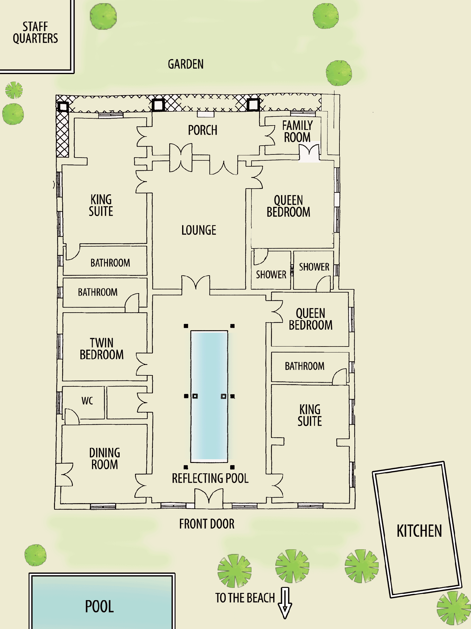 The villa is a privately owned retreat and is looked after by Kingsley and his team. Breakfast is included in the price served in the dining room; other meals are prepared for you at market price. Guests who prefer to cook may take advantage of the separate, well-equipped sea-view kitchen.